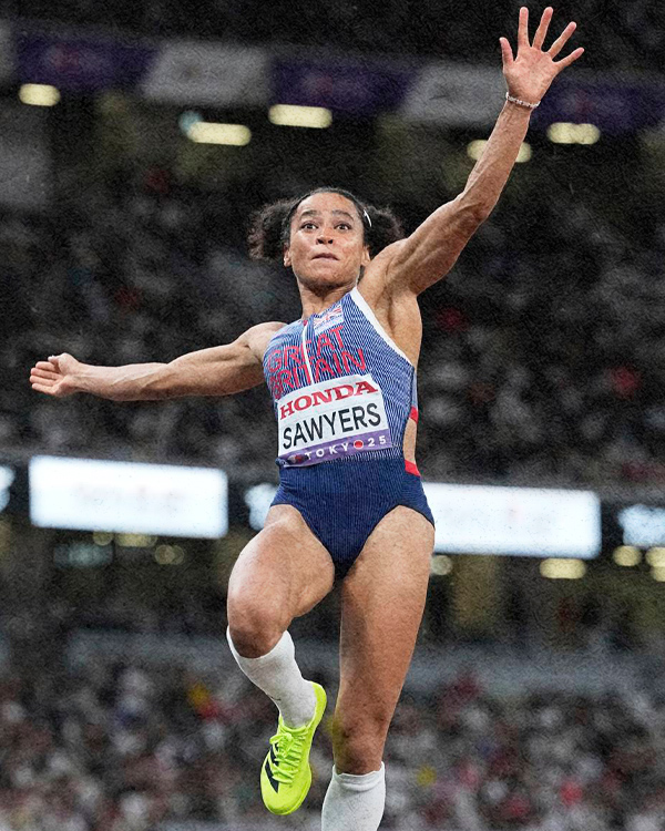 Sawyers revealed in April 2024 that she ruptured the Achilles tendon on her take-off leg and underwent surgery, causing her to miss the Paris Olympics months later. She faced a 20-month recovery and in August won the women's long jump at the 2025 UK Athletics Championships — her fifth title.